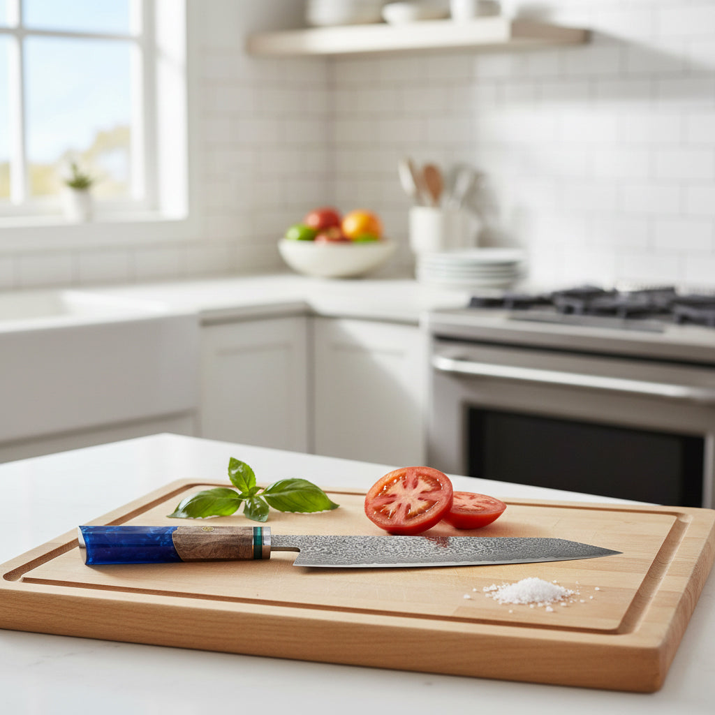 • Couteau kiritsuke tranchant comme un rasoir avec une lame de 23 centimètres.