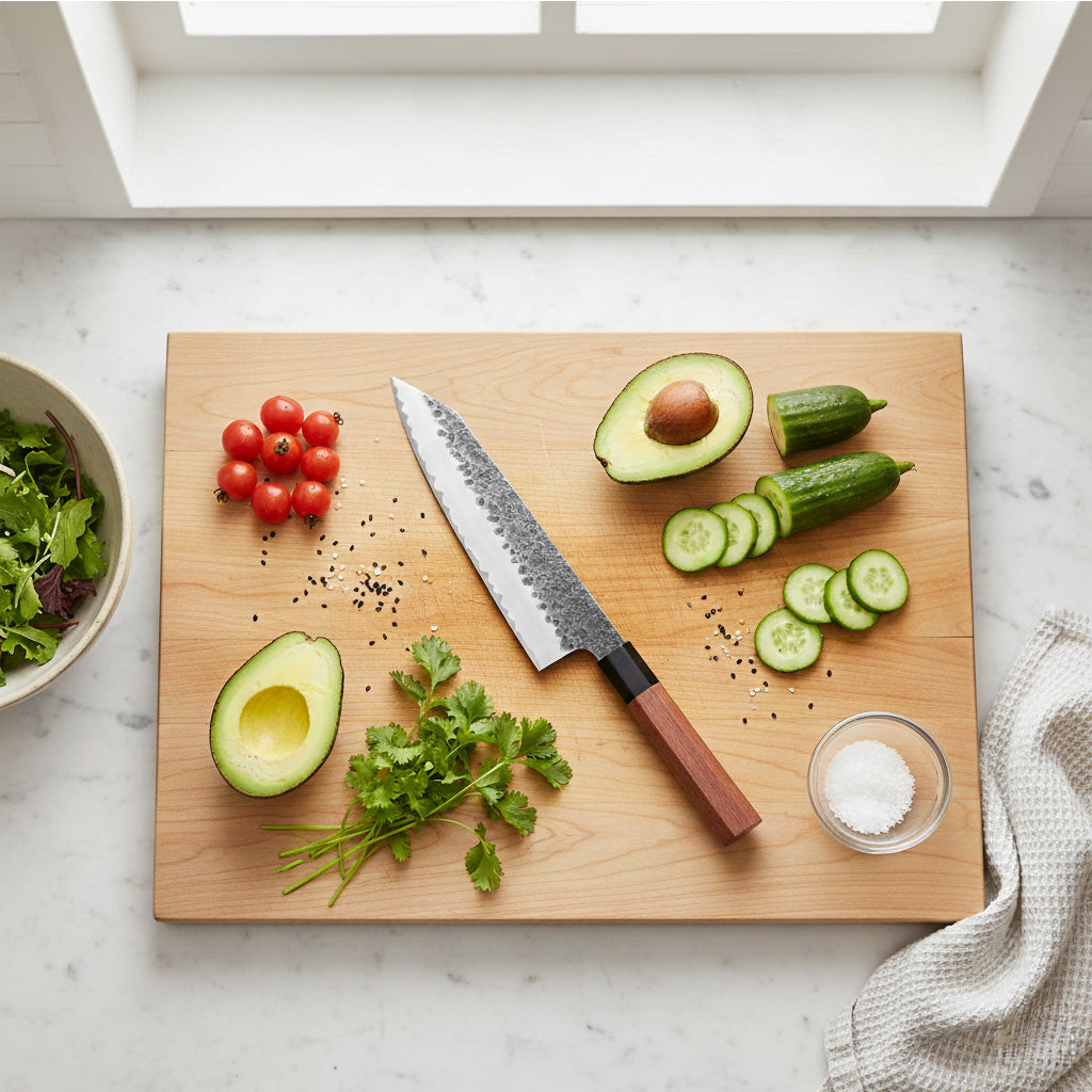 Des planches à découper de qualité sont essentielles pour garder vos couteaux bien aiguisés et prolonger leur durée de vie. Ils offrent une surface douce et non abrasive qui empêche les couteaux de s'émousser rapidement et réduit l'impact sur la lame lors de la coupe. Utiliser des planches à découper de haute qualité est un investissement à la fois dans les performances et dans la durabilité de vos couteaux.