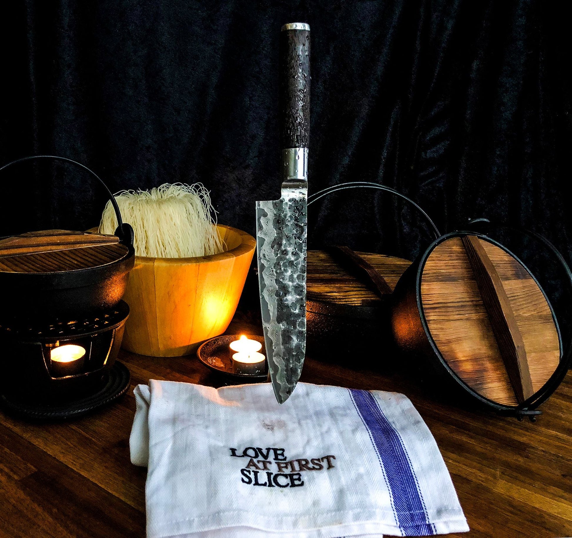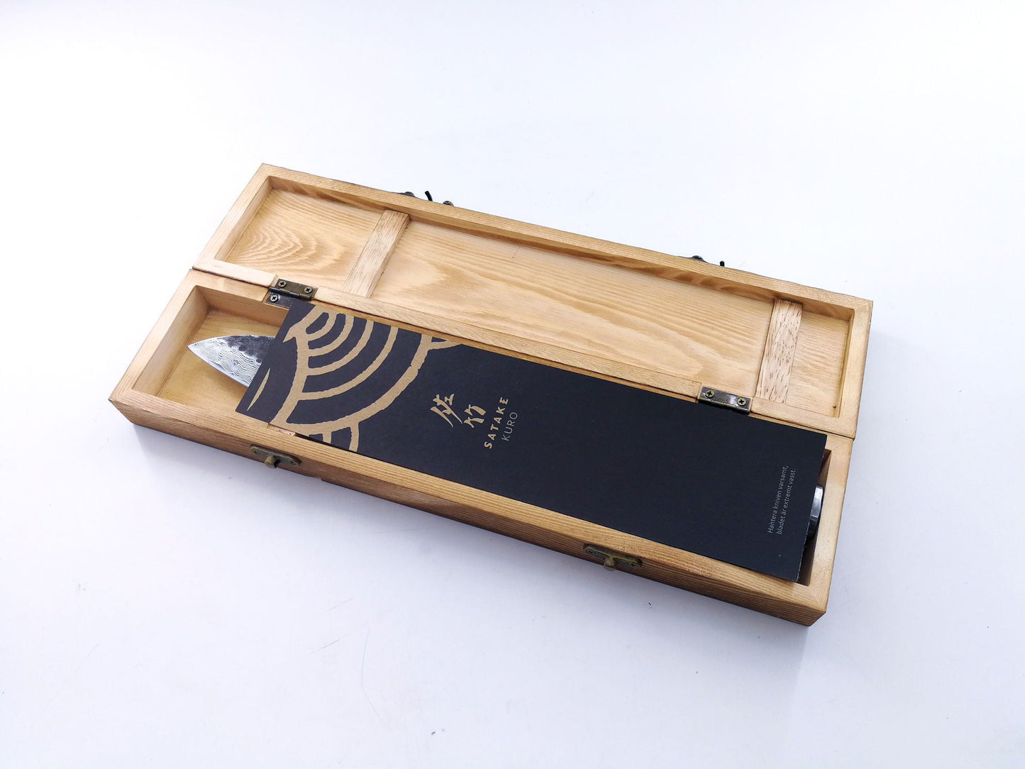 Les couteaux sont toujours livrés dans un joli coffret cadeau en bois. Cela garantit non seulement que les couteaux sont protégés tout au long du processus, mais également que cela vous fait sourire lorsque vous les recevez.