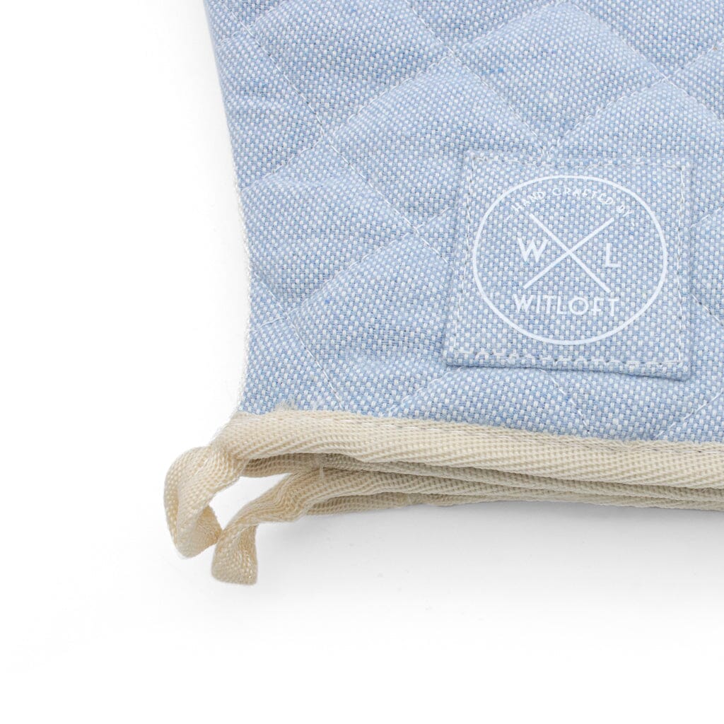 Le plus de ces gants de cuisine bleu ciel de Witloft : ces gants de cuisine sont fabriqués à partir de vieux vêtements collectés aux Pays-Bas, en Belgique, au Danemark et en Allemagne. Après la collecte, les vêtements non portables sont nettoyés, décapés et séparés par couleur et matière. Ce vêtement est coupé en petites fibres, à partir desquelles un nouveau fil est fabriqué. Le tissu de ces gants de cuisine est ensuite fabriqué à partir de ce fil recyclé . Cette collection a été réalisée avec ce tissu !