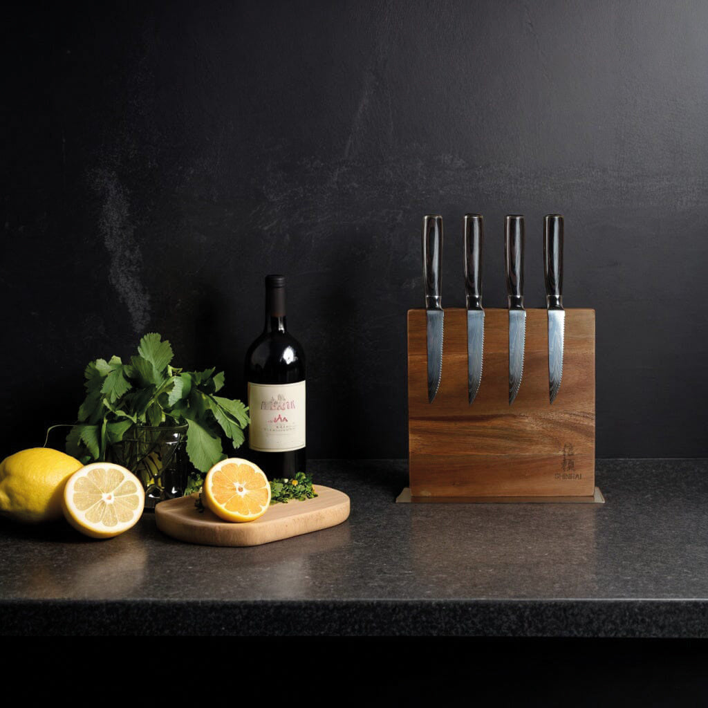 • Durabilité: Fabriqués par Shinrai, ces couteaux à steak sont conçus pour durer. Ils résistent à une utilisation quotidienne et conservent leur netteté et leur aspect même après d'innombrables dîners.