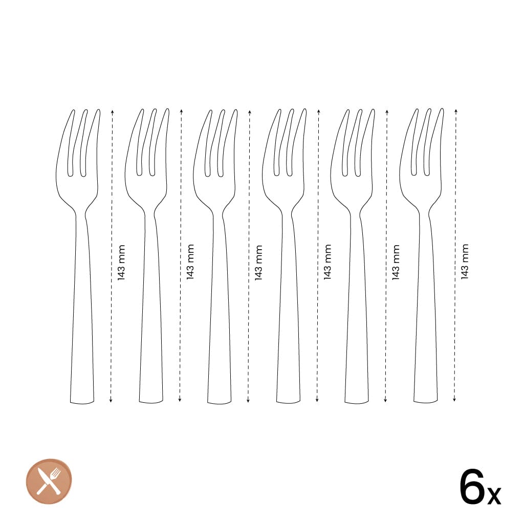 The Felicity 6 Pastry Forks from Amefa have been specially formulated for the home chef who wants to transform every dessert moment into a festive experience. Designed with the home chef in mind, our pastry forks not only promise functionality but also add a touch of elegance to any table setting. This edition of the Felicity has been finished with precision and is distinguished by its beautiful Champagne color and unique hammered relief in the handle .