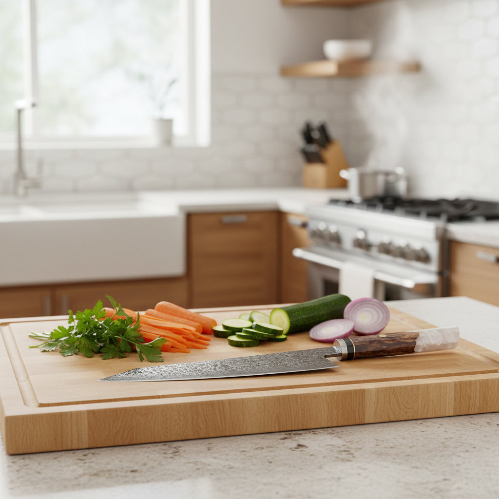 • Razor-sharp kiritsuke knife with a blade of 23 centimeters.