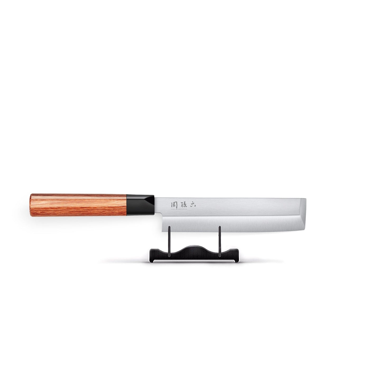 The Magoroku Pakka Nakiri Knife (16.5 cm) from Kai Shun is an essential knife for cutting vegetables with precision and ease. This nakiri knife from the Seki Magoroku Red Wood series combines Japanese craftsmanship with a traditional and functional design, ideal for both professional chefs and passionate home cooks.