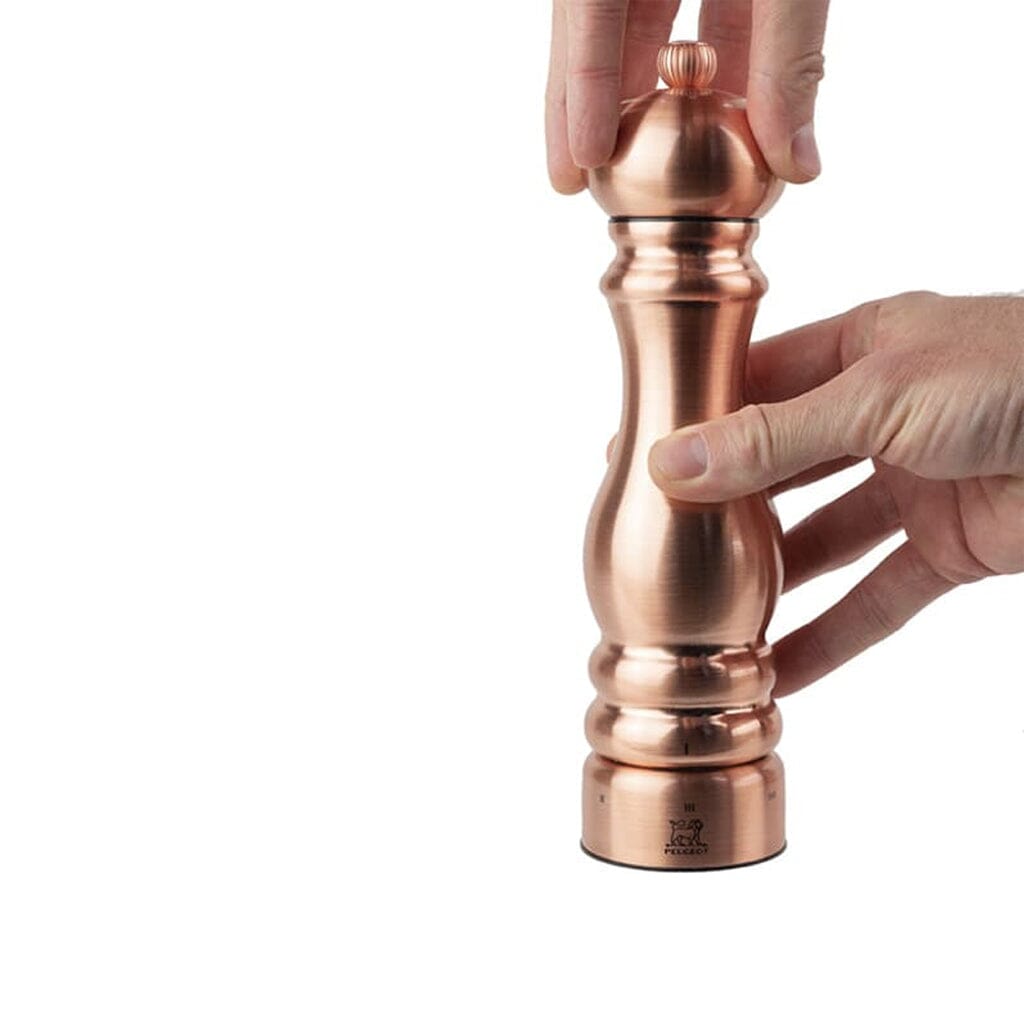 The Paris chef salt mill stainless steel copper 22 cm u'select by Peugeot is the perfect partner for the home chef who values precision and style. This salt mill by Peugeot has a unique grinding mechanism that is specifically designed for grinding salt. The coarseness of the grind can be easily adjusted by turning the ring at the base of the mill. This mill is of course equipped with Peugeot's unique grinding mechanism.